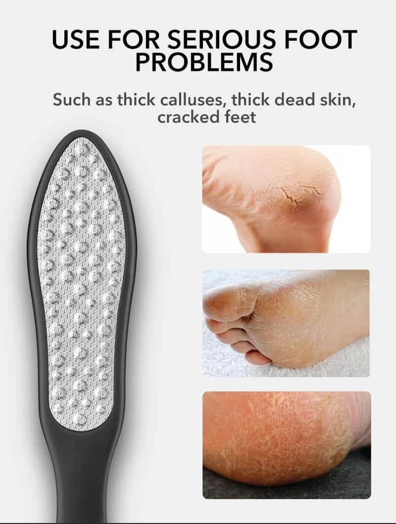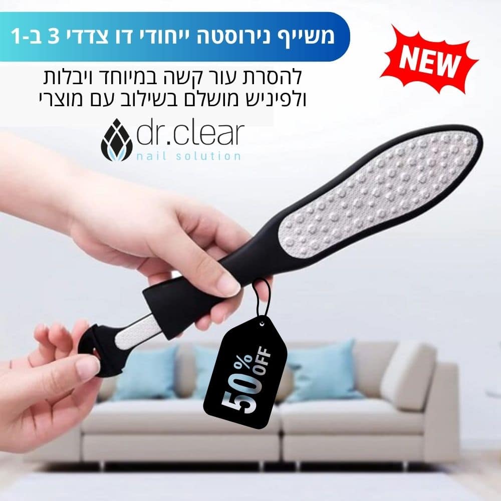 משייף כף רגל נירוסטה דו צדדי 3 ב 1 להסרת קאלוס ויבלות. לפדיקור ביתי מושלם Dr.Clear