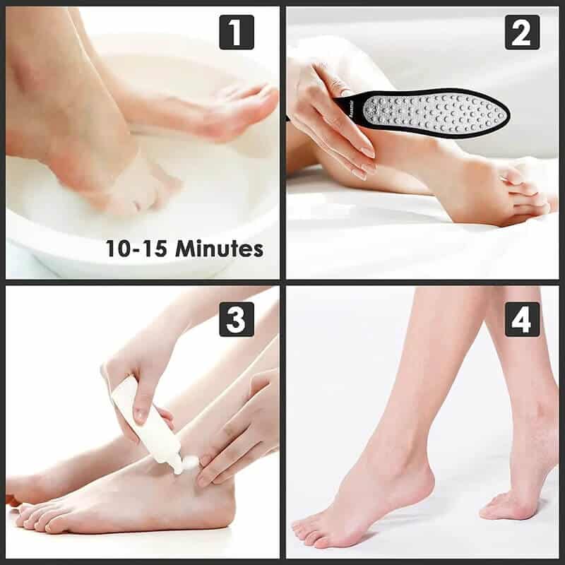 1.שטפו את הרגליים והשרו את הרגליים במים חמים למשך 10 דקות.